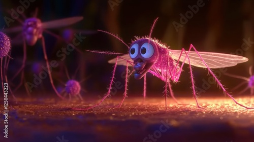 © wiwat apisithpinyo, Fototapeta premium Playful Cartoon Mosquito Character with Bright Colors and Big Eyes