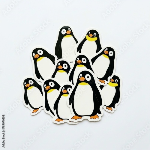© Meng, Naklejka premium Playful Cartoon Penguins in Various Expressions and Delightful Arrangements