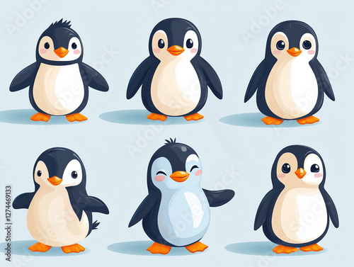 © Bohdan, Fototapeta premium Playful cartoon penguins on a light background