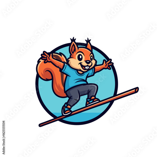 © Aksapix Studio, Fototapeta premium Playful Cartoon Rodent Skateboarding On A Plank, Blue And Orange Hues