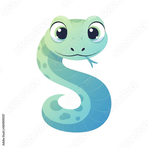 Naklejka premium Playful cartoon serpentine creature with large expressive eyes and a gentle smile curves into a stylized shape for design.