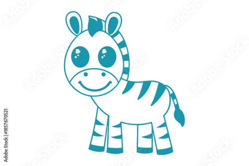 Fototapeta premium Playful cartoon zebra looks cheerful with large eyes outlined in bright blue color