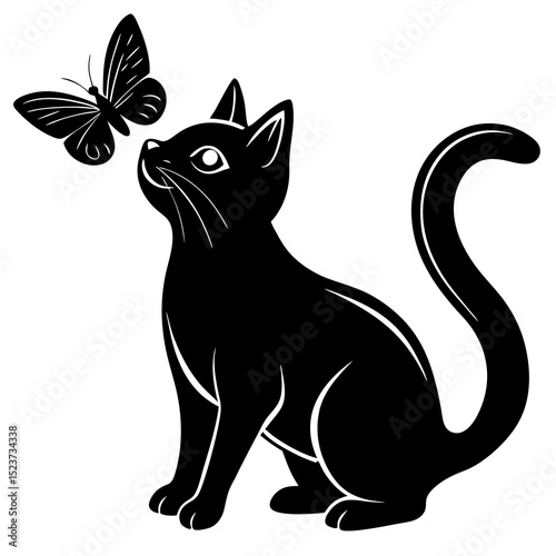 © Shakila, Fototapeta premium Playful cat with butterfly silhouette vector illustration