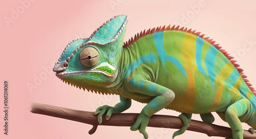 Fototapeta premium Playful chameleon cartoon with funny gestures, vibrant on a soft color...