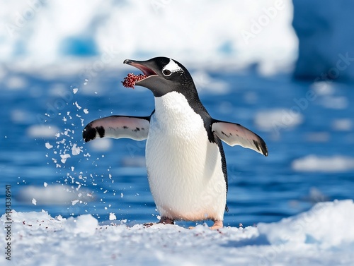 © adspttra, Fototapeta premium Playful Chinstrap Penguin Chick in Antarctica