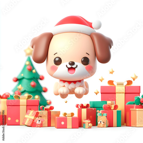 Fototapeta premium Playful 3D Jumping Holiday Doggie