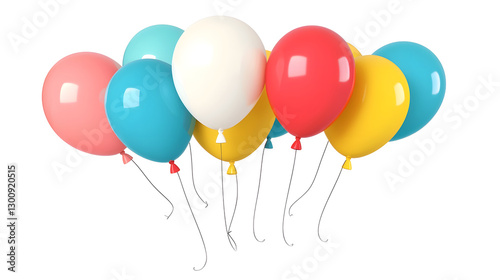 © Srinard, Fototapeta premium Playful 3D rendering of multiple colorful helium balloons in various bright shades tied together with thin ribbons symbolizing festive atmosphere Transparent background in cutout format