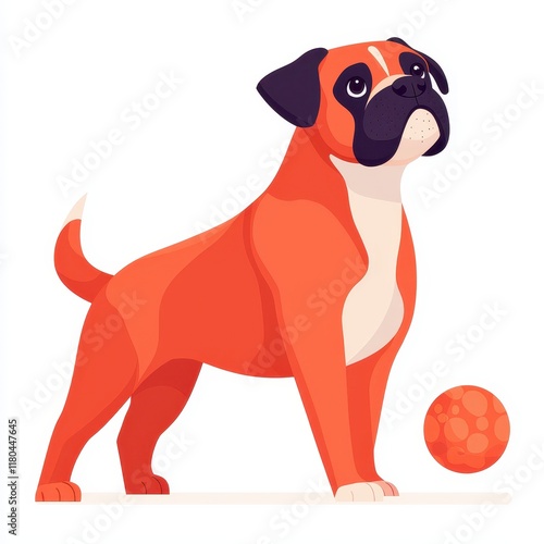 © Mayapopy, Fototapeta premium Playful Dog Standing Next to a Bright Orange Ball Toy