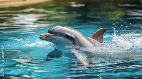 Naklejka premium Playful Dolphin in a Sparkling Pool