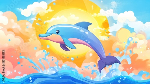 Obraz premium Playful Dolphin Leaping at Sunset