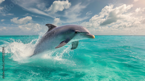 Naklejka premium Playful Dolphin Leaping from Ocean