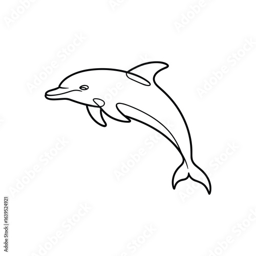 Fototapeta premium Playful dolphin leaping in a simple black line art marine mammal ocean animal