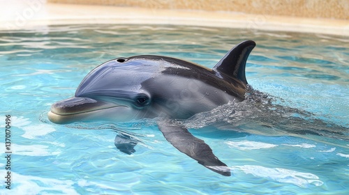 Fototapeta premium Playful Dolphin Swimming in Crystal Clear Pool Water