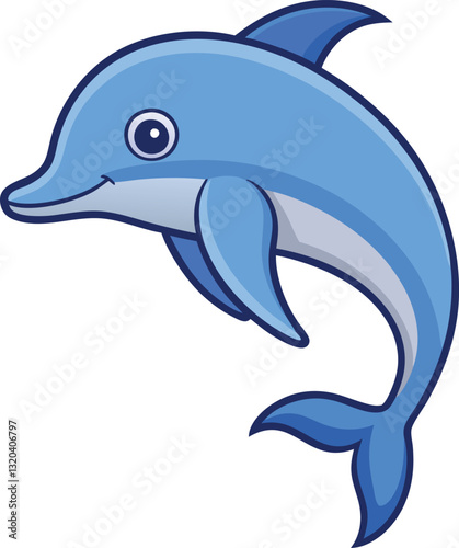 Fototapeta premium Playful Dolphin Vector Illustration with Blue Colors, A cheerful vector illustration of a dolphin swimming, with smooth blue tones and a playful design, perfect for ocean and aquatic-themed projects.