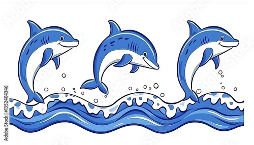 Fototapeta premium Playful Dolphins Leaping Ocean Waves.