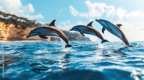 Obraz premium Playful Dolphins Leaping Over Ocean Waves