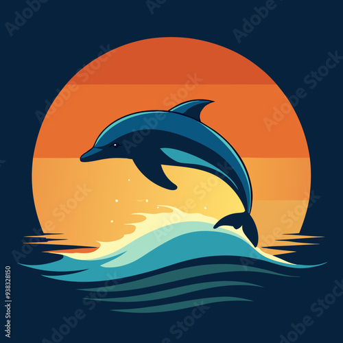 Obraz premium Playful Dolphins Leaping Over Waves with a Sunny Coastal Vibe art vector...