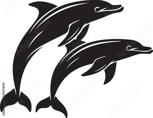 © @tshirtbd88, Fototapeta premium Playful Dolphins Silhouette with Ocean Waves