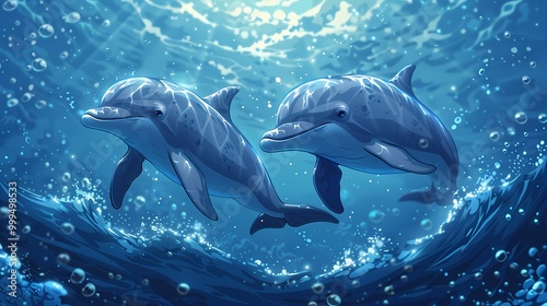 Naklejka premium Playful Dolphins Swimming in Crystal Clear Water