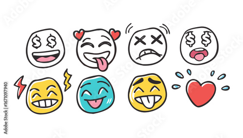 © MST CHIN BANU BEGUM, Obraz premium Playful doodle emojis with expressive faces vector