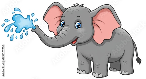 Naklejka premium Playful Elephant Sprinkling Water: A Cute Cartoon Illustration