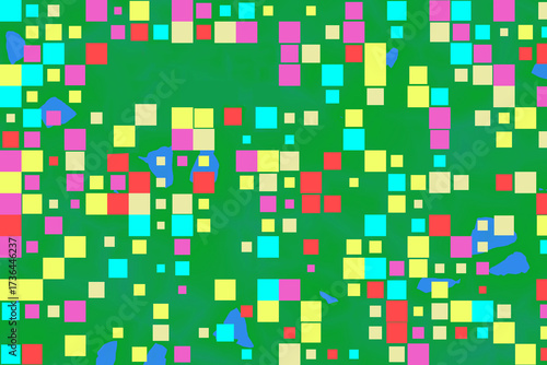 © HagopAno, Fototapeta premium Playful Energetic Mosaic Varied Colored Squares Scattered Backgrounds Modern Art
