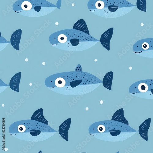 © Worawee, Naklejka premium Playful fish patterns underwater scene digital illustration calm environment top view cute design