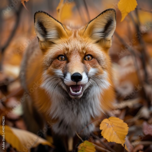 © Dawei, Fototapeta premium Playful Foxes Frolicking in the Springtime Meadow, Surrounded by Blossoms and Fresh Greenery