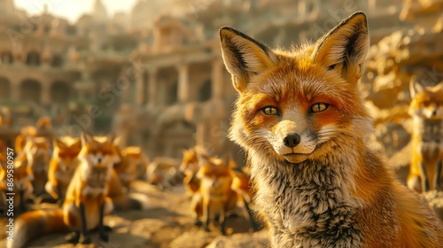© Amonthep, Fototapeta premium Playful foxes in 3D CG