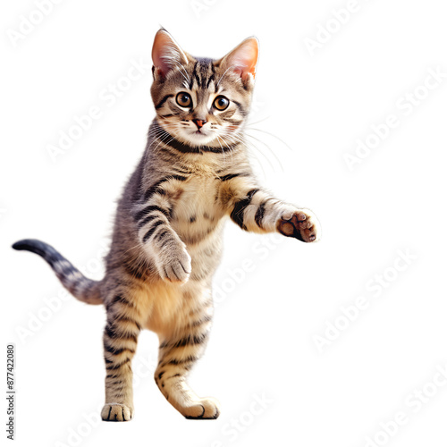 Obraz premium Playful funny striped kitten isolated on white background. PNG