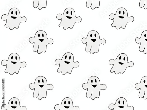 Fototapeta premium Playful Ghost Pattern on White Background for Halloween, ghost pattern