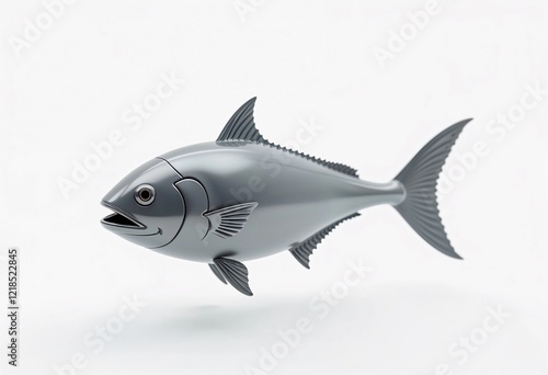© Vladyslav, Obraz premium Playful Gray Fish Toy Swimming in a Bright White Space. Generative AI
