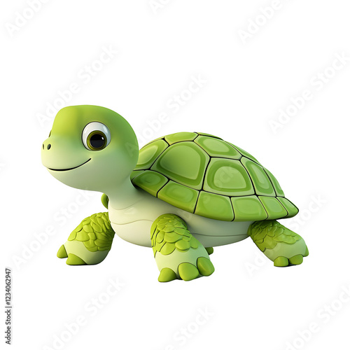 Fototapeta premium Playful green turtle character cartoon style vibrant colors whimsical...