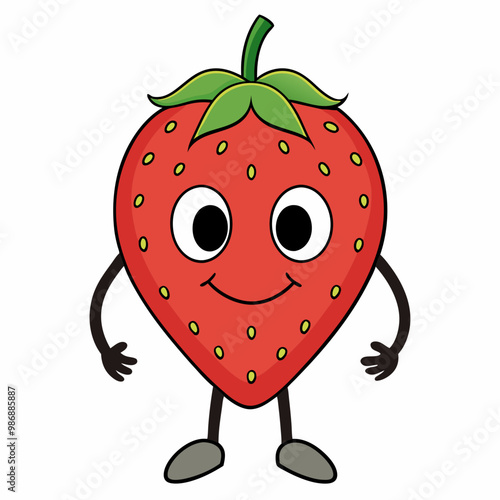 © Adobe , Fototapeta premium Playful Jumping Strawberry Vector Illustration on White Background,Cute Cartoon Jumping Strawberry Vector Art with White Background,