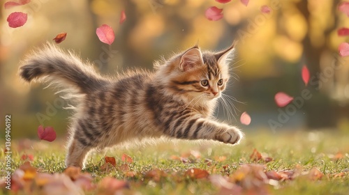 © Mrs.PTV, Obraz premium Playful Kitten Running Through Autumn Leaves