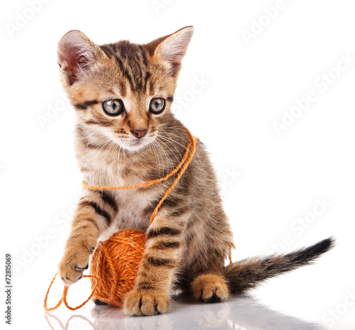© serkucher, Obraz premium playful kitten with brown ball