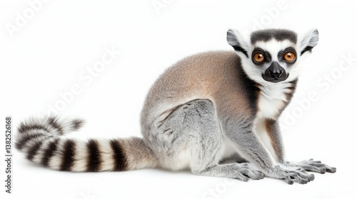© DG, Fototapeta premium Playful Lemur with Striped Tail and Expressive Eyes on White Background