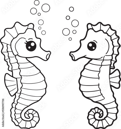 © Mimizuzuhaha, Obraz premium Playful marine animal stickers, Sea horse