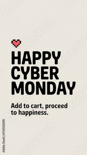 © AnasTruba, Naklejka premium Playful minimal card celebrating Cyber Monday with a heart for added joy and excitement in online shopping