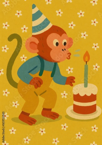 © Rawpixel.com, Naklejka premium Playful monkey birthday celebration