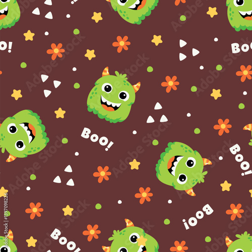 Obraz premium Playful Monster Motif: Seamless Repeat Pattern for Juvenile Designs and Textiles