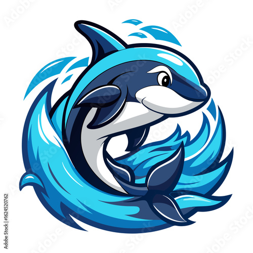 © Nobel Fahad, Obraz premium Playful Orca Mascot Leaping Through Waves with Thick Outlines for Aquatic-Themed Gaming