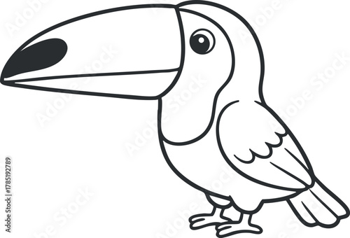 Obraz premium Playful outline vector illustration of a toucan, ideal for nature-themed designs, logos, or educational materials
