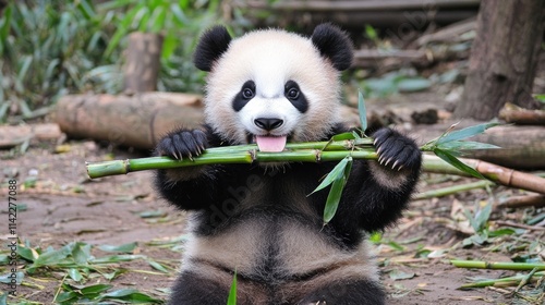 © almeera, Obraz premium Playful Panda Enjoying Bamboo