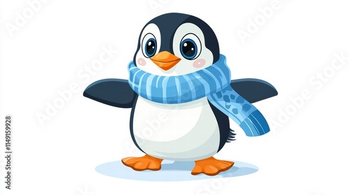 Fototapeta premium Playful penguin in a blue scarf winter wonderland digital art cheerful...