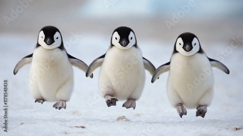 © nabila, Naklejka premium Playful Penguins in a Snowy Landscape