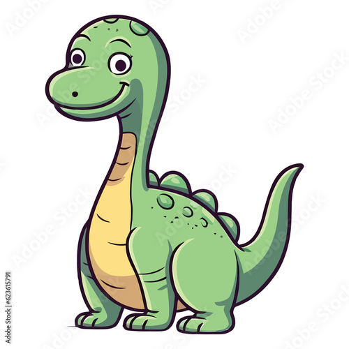 © pisan, Naklejka premium Playful Prehistoric Friend: Cute Brontosaurus Dinosaur Illustration