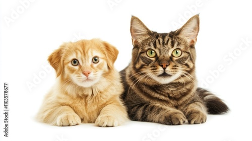 © arthit, Obraz premium Playful Puppy and Friendly Cat Companionship