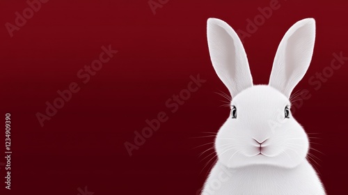 © AI Photo Stock, Obraz premium Playful Rabbit on Solid Red Background - A cheerful rabbit symbolizes innocence, playfulness, nature, joy, and curiosity against a striking red backdrop.
