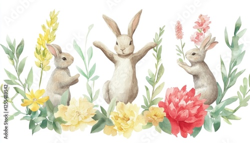 Obraz premium Playful rabbits amidst vibrant flowers in a whimsical garden setting